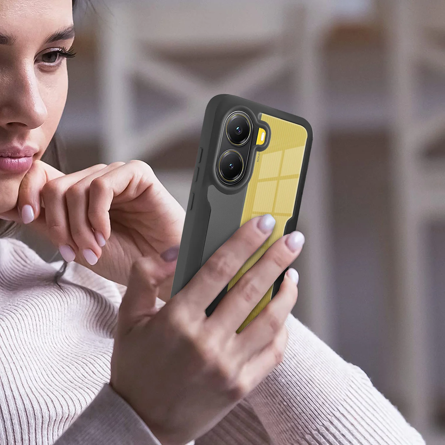 --Raised lip edge protects the camera and the phone screen.